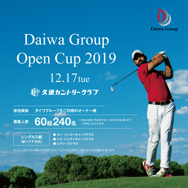 今年も多くのお客様を募り、上級者から初級者まで楽しんでいただける「ダイワグループ オープンカップ2019」を開催いたします。